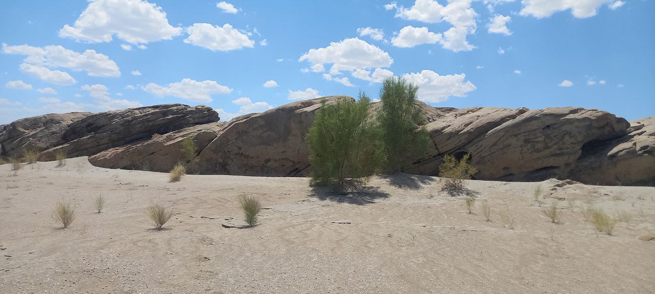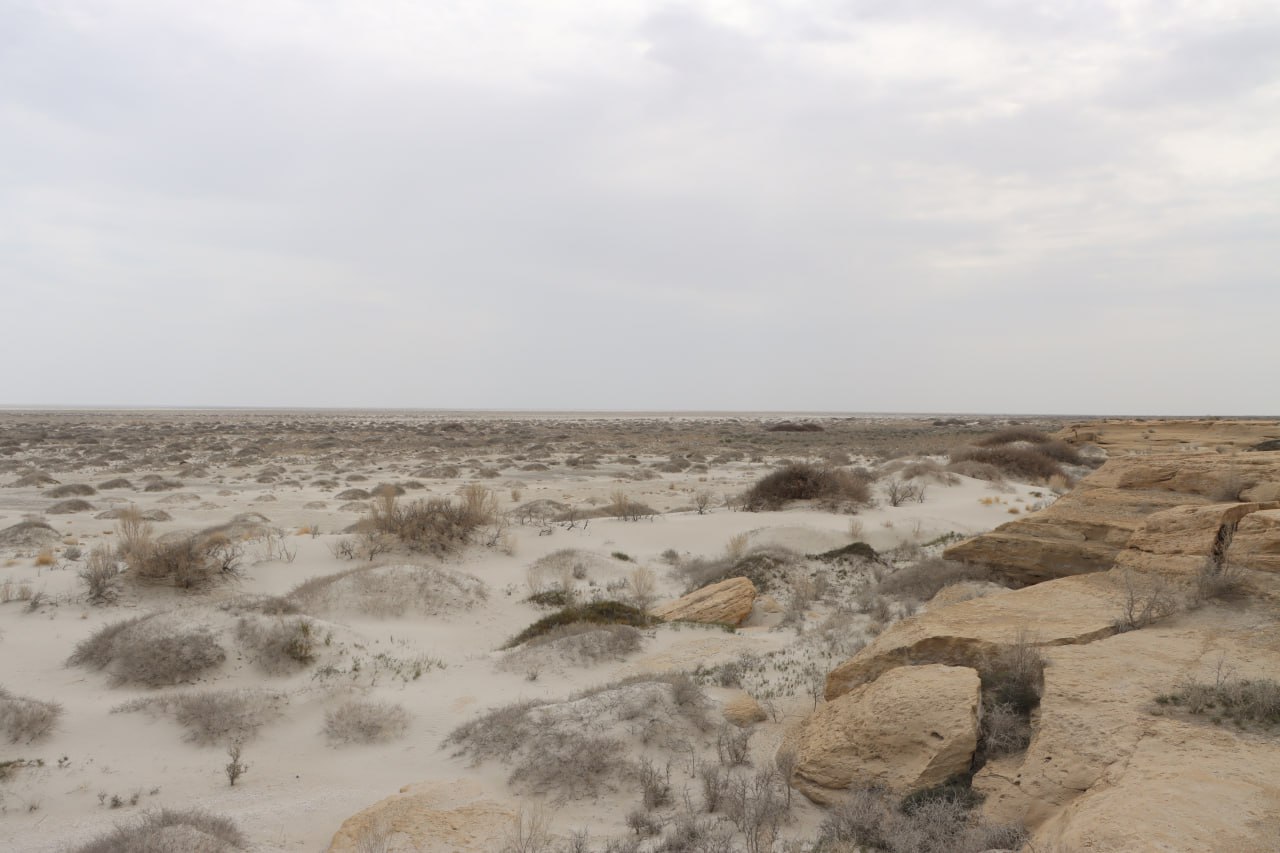 Флораси Денгиз сатҳидан 25-50 м баландликда саксаул, черкез, қандым, юлғин, қамиш, жинғил ва кам миқдорда цистанхе ўсимликлари учрайди. “Оролқум” миллий табиат боғида